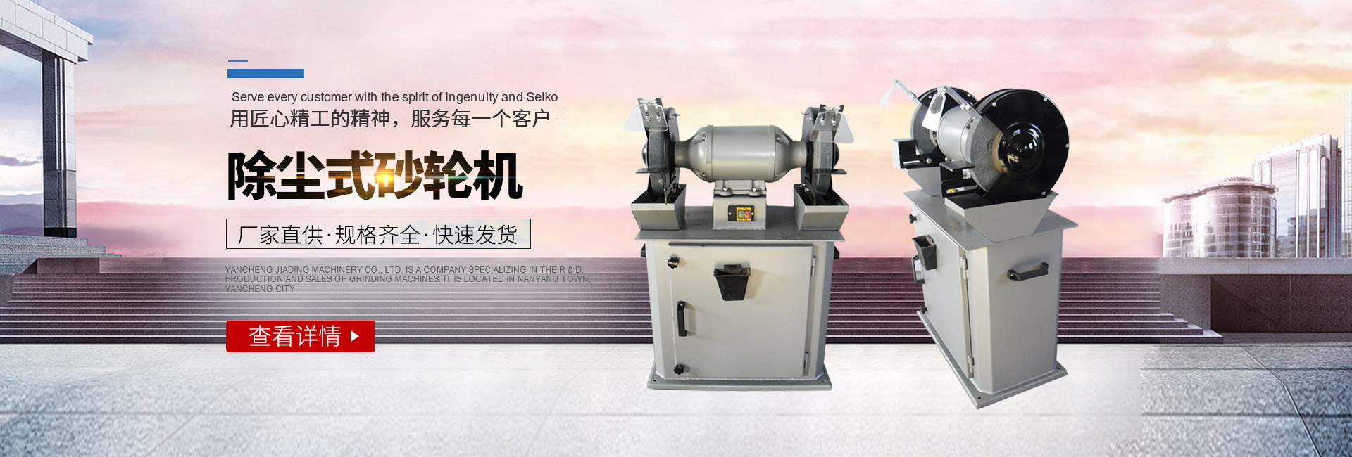 鹽城嘉鼎機械有限公司是一家專業從事砂輪機研發(fā)、生產、銷售為一體的公司,坐落在鹽城市南洋鎮。主要產品有:砂輪機、砂帶機等系列。其中砂輪機有:臺式、立式、懸掛式、除塵式、它驅式、防爆式等三十多個規(guī)格品種,也可定制特殊行業所需的異型砂輪機。